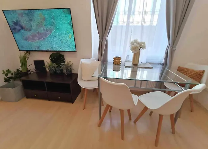 The large City Park is 3.5 km from the 40 m² apartment and the twin-towered Szechenyi Chain Bridge is located approximately a 10-minute drive away. Trendy 2 Room Flat Near Corvin Mall With Garage is 3.6 km from the 19th-century fortress "Fisherman's Bastion".